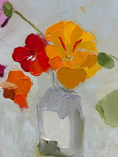 I am a painter and art teacher residing in Chester County Pennsylvania. I have always known I was an artist for as long as I can remember. I paint for the palpable joy of touching brush to canvas, the joy of color, the lushness of paint itself and its ability to describe how I’m feeling. My studio is filled with some of my favorite things: flowers, vases, vintage dishes and figurines. Painting is romantic and it’s sensual, it allows me to connect to my feelings and thoughts. I am addicted to those feelings for they are the ones that let me know how much I love being alive and connected to others, whether in pain or joy. My paintings are my love letters to life.
